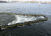 多余的水可以通过后网快速的分离出来。这一系统对水及油的减速效果高达70%,可使溢油汇集到围油栏的底端,而不会出现头波现象或预期现象。