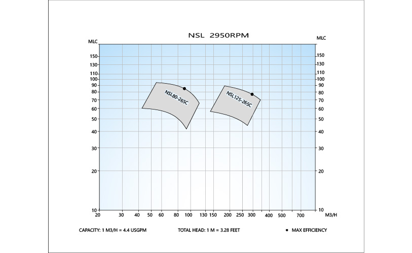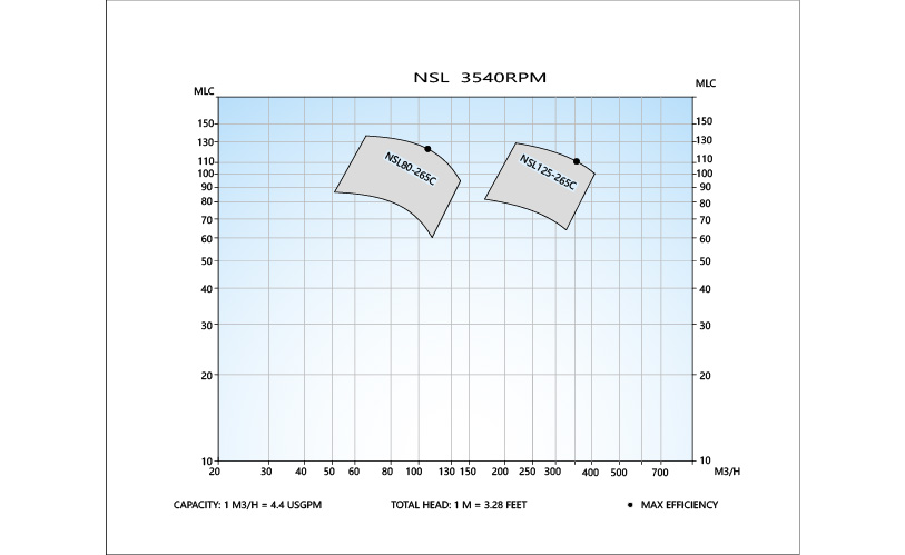 | Flow rate - 50 Hz | Up to 320 m3/h (1400 US gpm) |